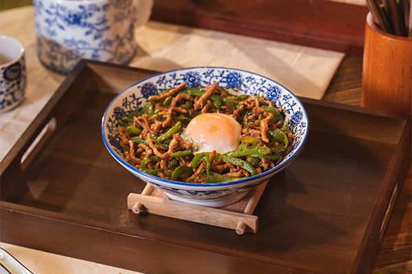 青椒肉丝盖饭 Shredded Pork with Green Peppers Rice Bowl